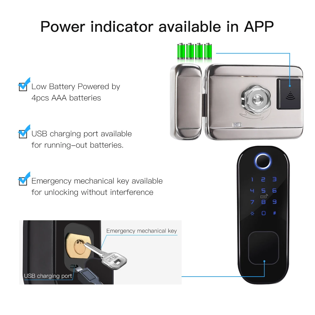R5 Tuya умный Wifi разблокировочный замок биометрический отпечаток пальца безопасности интеллектуальное приложение удаленный Пароль RFID карта дверной замок Характеристика: 1. Смарт-блокировка отпечатков пальцев Tuya представлена как приложение Tuya smart/Smart Life, поддерживающее интеллектуальное управление безопасностью, которое совместимо с различными врезными элементами для 99% дверей; Водонепроницаемая резина для повышения безопасности и долговечности; двусторонняя ручка свободного стиля. 2. Несколько способов разблокировки, таких как пароль, смарт-карта, разблокировка отпечатков пальцев и ключей, особенно удаленное разблокирование приложений для дополнительного удобства; Каждый способ разблокировки работает нормально без помех. 3. Приложение Smart Life, совместимое с умным замком, позволяет отправлять временный пароль; Проверить будильник и разблокировать запись через приложение для большей безопасности вашего дома; управление пользователем для добавления членов семьи или других людей, чтобы поделиться смарт-замком вместе; hijack и дверной звонок Будильник, представленный в приложении. 4. Низкая мощность питание от аккумулятора 4 шт. 1,5 в AAA батарейки и индикатор питания в приложение позволяет еще на интеллект; Usb-порт для зарядки в тех случаях, когда батарея отключается; Механический ключ для разблокировки также функционален без каких-либо помех. Спецификация: Модель: R5 Материал: алюминиевый сплав Механический цилиндр замка: c-уровневый цилиндр замка Метод разблокировки: отпечаток пальца, пароль, IC карта, приложение, механический ключ Длина пароля: до 24 цифр Количество групп паролей: бесконечная петля Применимый Тип: деревянная дверь и стальная дверь Подходящая толщина циферблата: 38-70 мм/1,5-2.7in Направление открытия двери: обычная левая и правая Аварийный источник питания: блок питания micro USB Размер продукта: 156*59*35 мм/6,2*2,3 * 1.37in Вес изделия: 600 г Размер упаковки: 350*100*50 мм/13,7*3,9*1,9 дюймов Посылка Вес: 1800 г Примечание: В связи с различиями мониторов и эффектами освещения реальный цвет товара может немного отличаться от цвета на фотографиях. Спасибо! Возможны отклонения в 1-2 см вследствие измерений вручную.