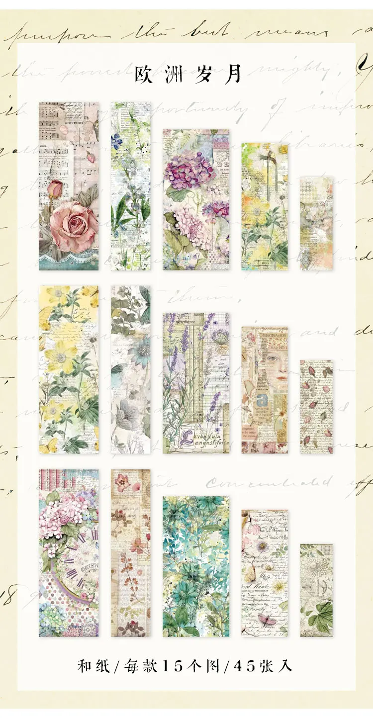 Тип: декоративная наклейка Материал: японская бумага Артикул: 8 видов конструкций Количество: 45 шт. Вес: 26 г Размер: больше 24*69 мм Меньше 44*124 мм Посылка: пластиковая посылка Размер посылка: 58*153*5 мм Посылка включает в себя: 15 моделей * 3