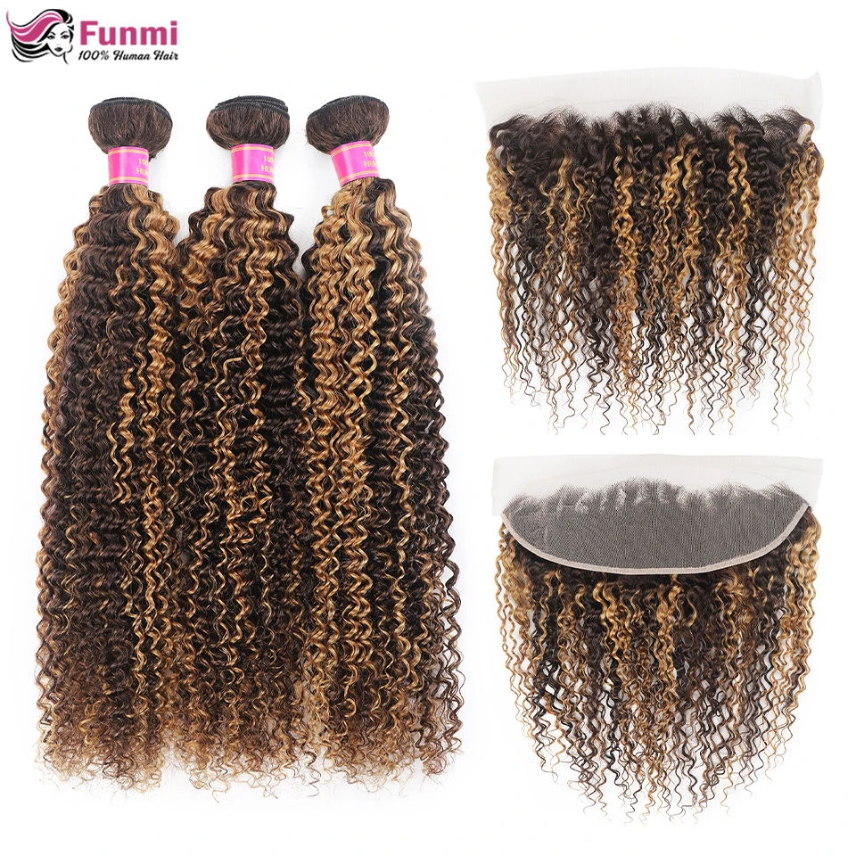 Выделите пряди с фронтальной 13X4 дюйма Кудрявые Волнистые пряди с прозрачной фронтальной свободной частью бразильские пряди человеческих волос