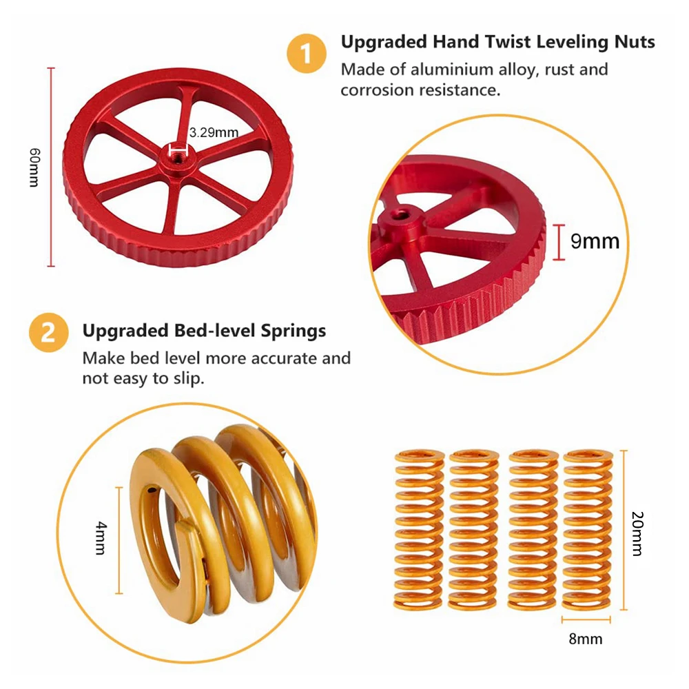 2 комплекта 4 * Пружинные пружины для жесткого и точного выравнивания кровати. Примечание: 8*20 мм предназначены для 3D-принтера серии Ender, 8*25 мм-для 3D-принтера серии CR.