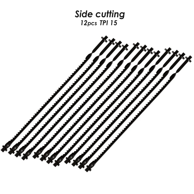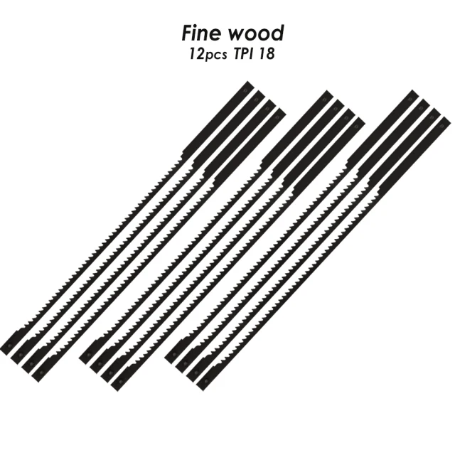 Тонкие лезвия (похожие на Dremel MS53-01) имеют 24 постоянных зубца на дюйм, толщину 0,010 дюйма и ширину 0,074 дюйма для более гладкой резки, очень острых поворотов и для тонкой работы.