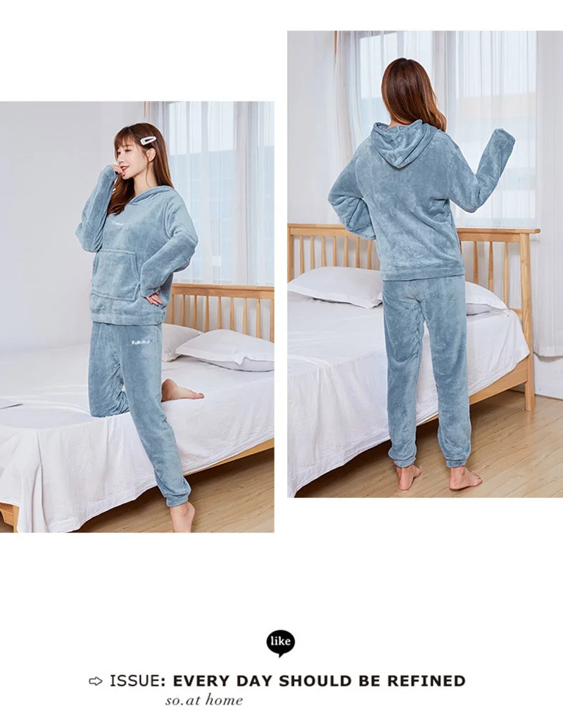 Женский зимний пижамный комплект, Толстая теплая фланелевая Домашняя одежда, зимняя Домашняя одежда, Женские Фланелевые пижамы, домашние штаны, теплая Домашняя одежда, костюм