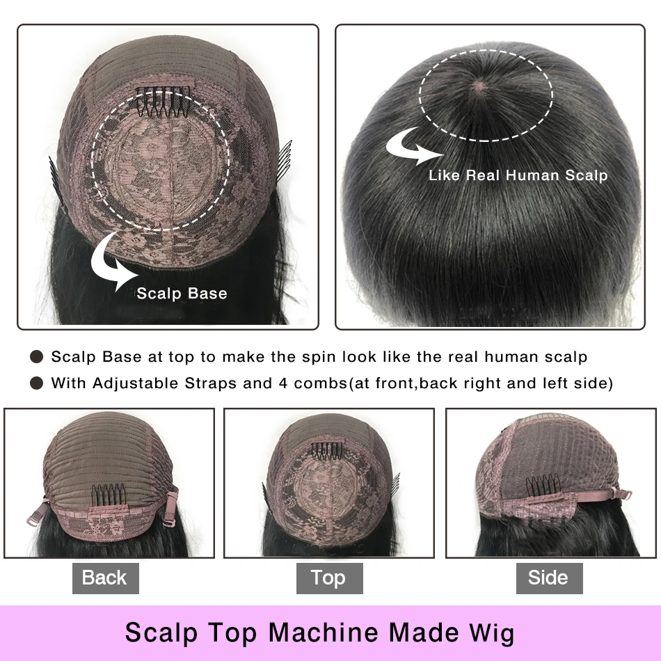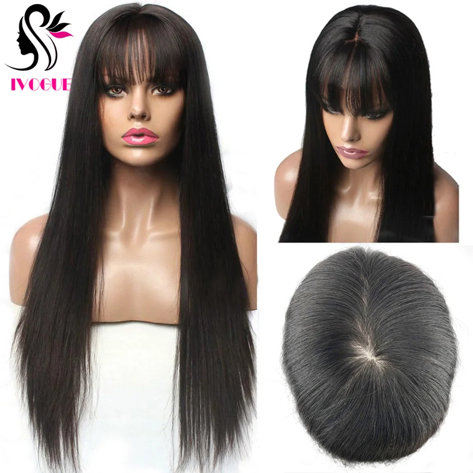 26 "Длинные прямые человеческие волосы парик шелковая основа головы Топ парик с челкой перуанские волосы Remy кожа Топ полный машинный парик с бахромой