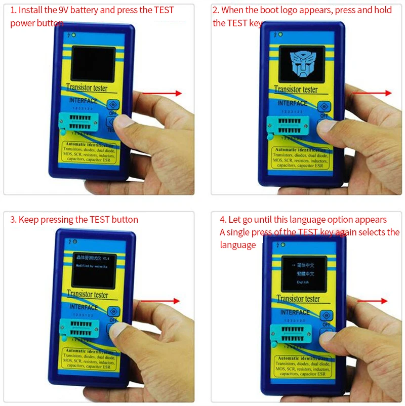 for example. You take a triode up, you don't need to consider the BCE order of 123, just plug it in. Then press the test key. He automatically identifies whether it is a triode, a field effect transistor, a thyristor or a resistor capacitor. . . . After identifying as a triode, test whether it is NPN or PNP, and then judge the BCE sequence. Display it graphically and then tell you the magnification, turn-on voltage, etc. Basically you just plug it in and press the button. The rest he will tell you what.