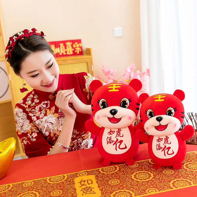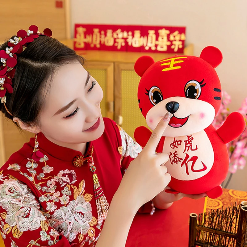 20 см 2022 новый год Китайский Знак зодиака Бык Тигр, плюшевые игрушки милый счастливый мешок тигр