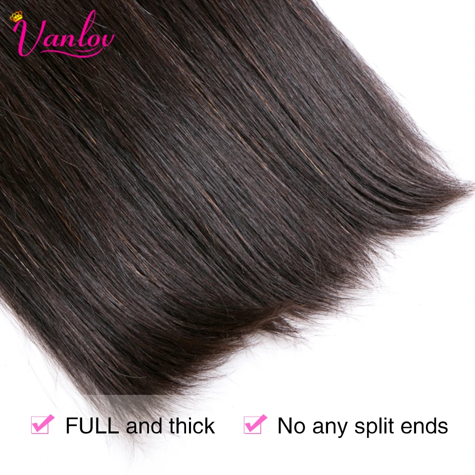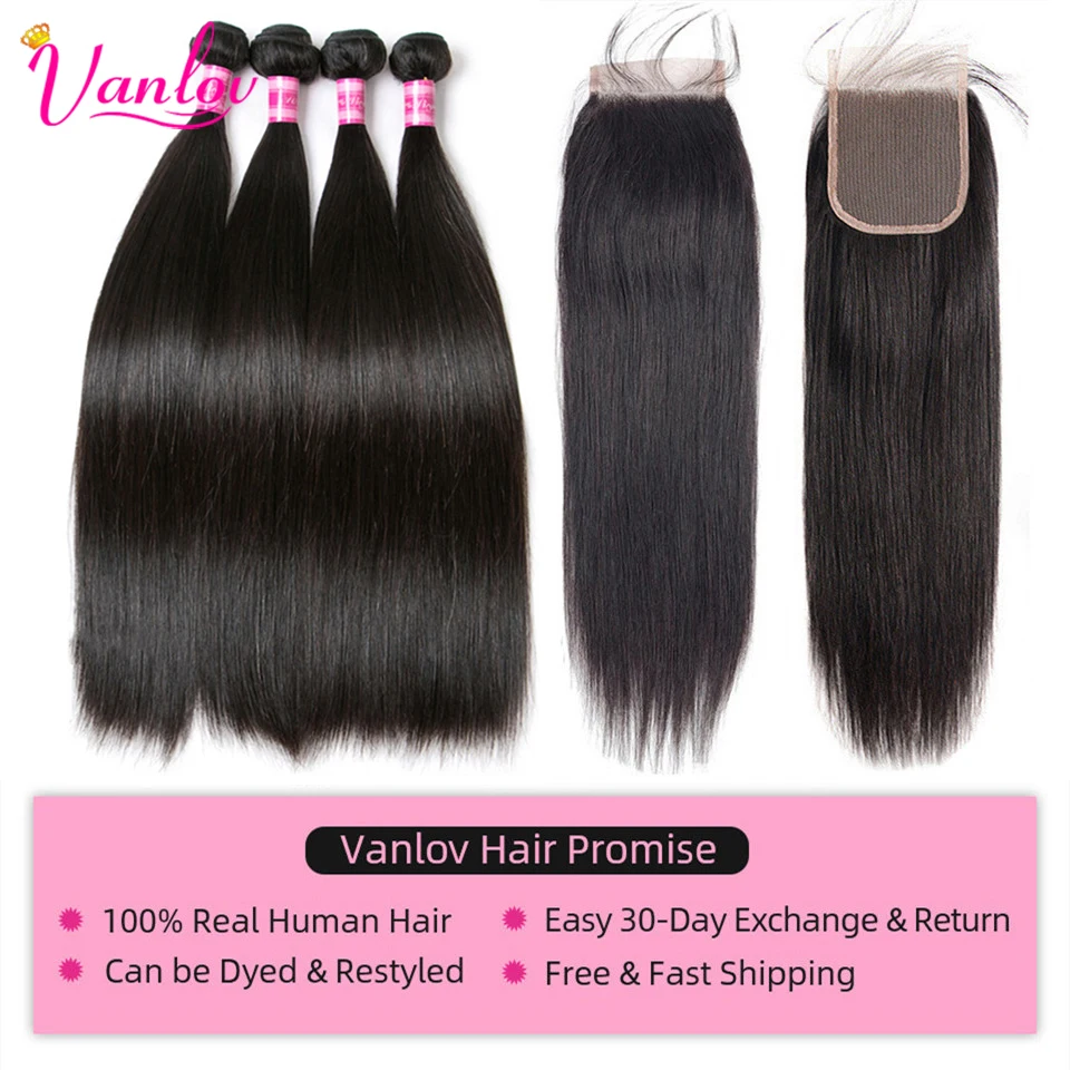 Vanlov перуанские волосы пряди с закрытием человеческие волосы прямые 3/4 пряди с кружевной застежкой Remy волосы для наращивания двойной уток