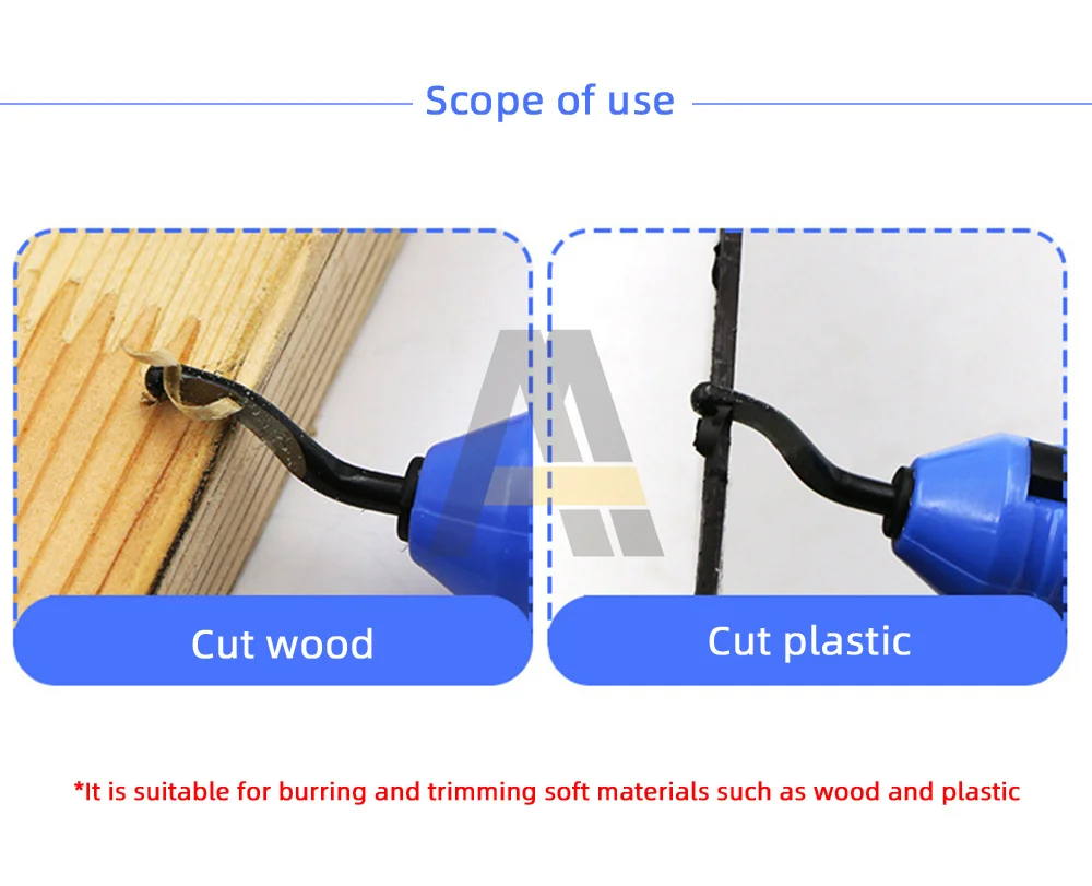 Подходит для удаления заусенцев и резки кромок мягких материалов, таких как дерево и пластик.