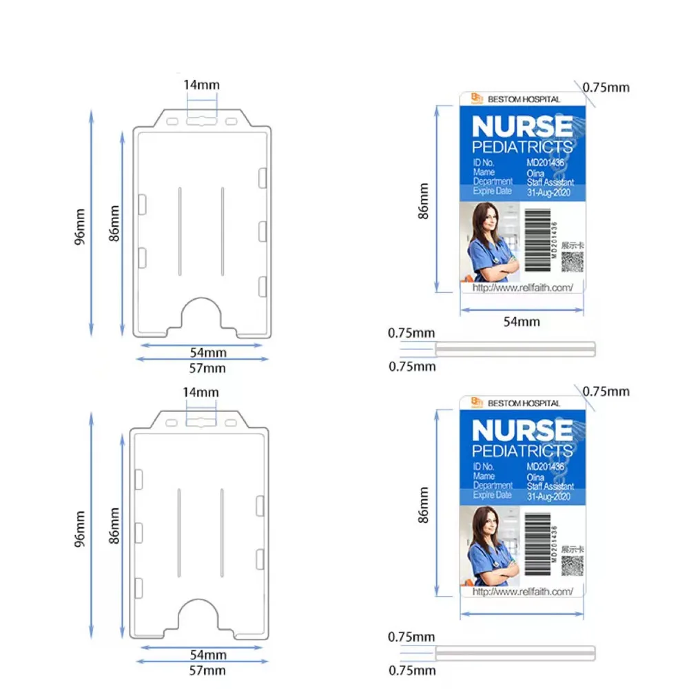 【Материал изделия 】 держатель значка изготовлен из АБС-пластика, размер вставки 54*86 мм, вертикальный двусторонний и открытый дизайн лица позволяет легко носить с собой 2 карты и легко вставлять и удалять карты. Нижняя структура слота для карт, пусть карты не отпадут.