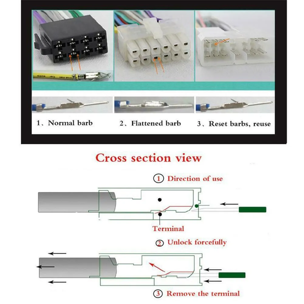 * Легкое удаление терминала: Терминальный инструмент не нужно поднимать клеммы! Просто вставьте наш инструмент, нажмите и потяните клеммные булавки для удаления. Наш инструмент обеспечивает дополнительное плечо, так что вы можете легко удалить провод.