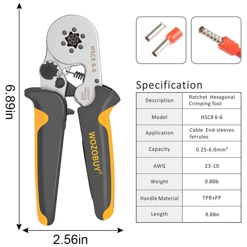 Профессиональное мастерство-низкое сцепление, легкий вес; Усиление мощности через локоть, идеально подходит для обжима изолированные и не Концевые муфты для изолированных проводов. Профессиональный обжимной инструмент может помочь вам быстро завершить проводку, подходит для всех видов оборудования переключатели, батареи, автомобили и домашнее хозяйство, электронные компоненты с контактами и т. Д.