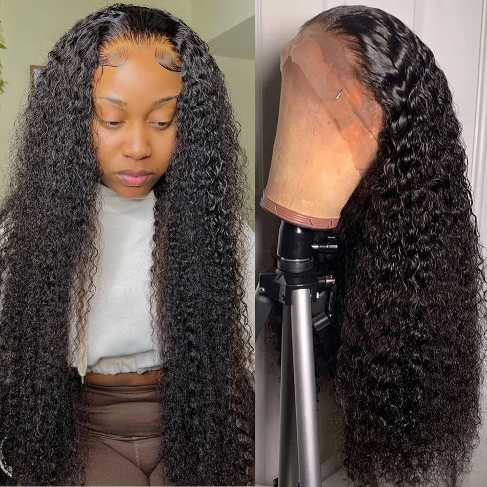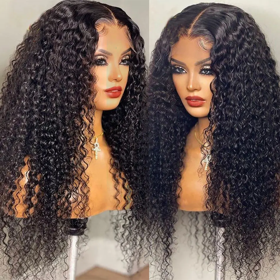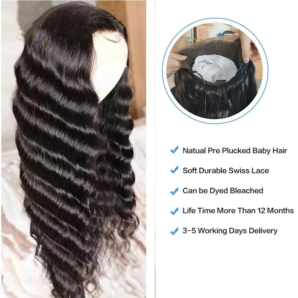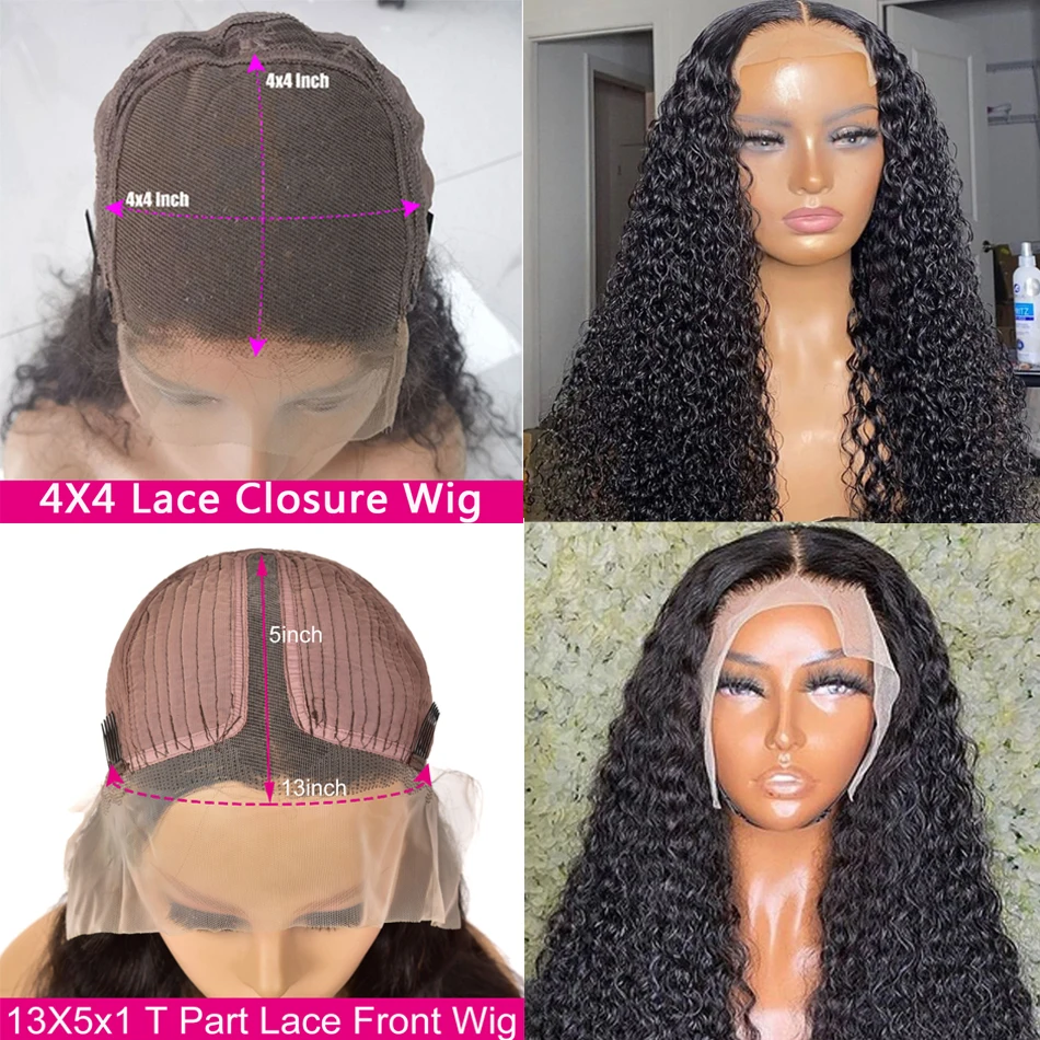 30 "прозрачный глубокая волна Кружева Закрытие парик 100% человеческие волосы парики 4х4 кружева закрытие парик Remy бразильские кудрявые человеческие волосы парик