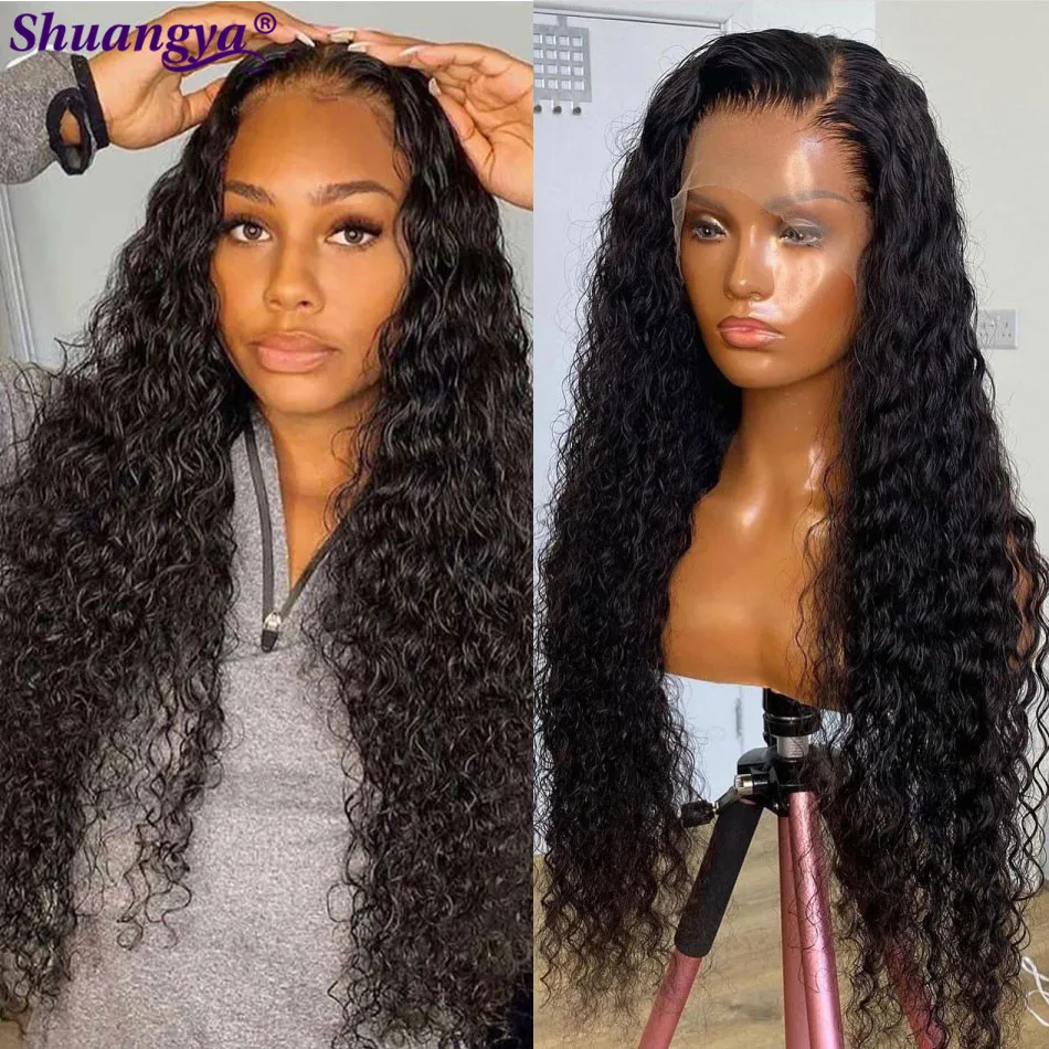 Прозрачный бразильский кудрявый прямой парик шнурка Remy человеческие волосы T часть парики шнурка Shuangya волосы закрытие шнурка парик кудрявые человеческие волосы парик