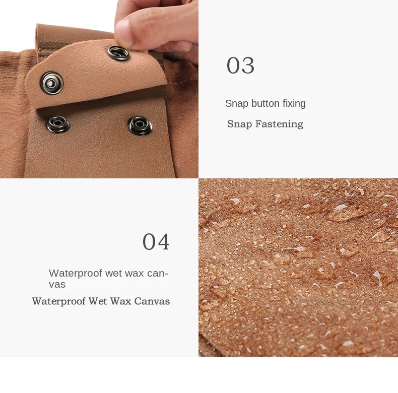 ● Дизайн сумки для ремня, который можно пристегнуть на ремне: вощеный холщовый мешок имеет петлю, которую вы можете прикрепить к поясу, поясной петле или рюкзаку, И имеет две металлические пряжки для легкого доступа во время путешествия. Вы можете потянуть ремешок, чтобы закрыть сумку, чтобы предотвратить падение любых предметов.