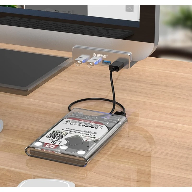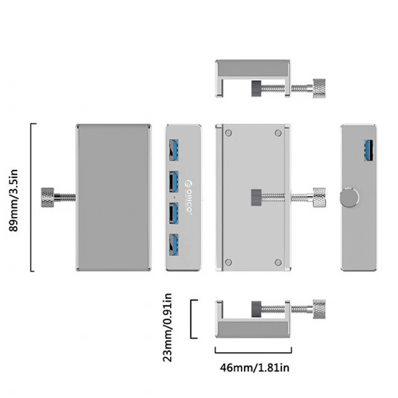 Модель концентратора ORICO MH4PU-SV выполнена в необычной форме. Помимо выполнения роли хаба, устройство может быть компактно закреплено на стол, монитор или в другом удобном месте. Крепление осуществляется винтовым зажимом.