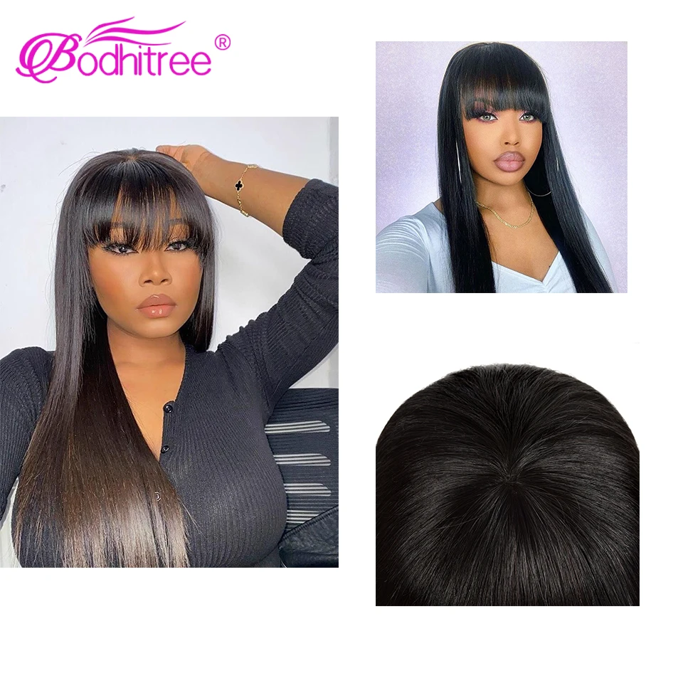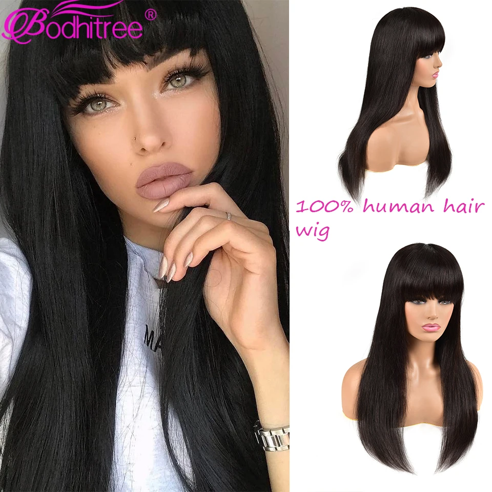 Прямые человеческие волосы парики Virgin Glueless Толстые Концы Полная машина сделал парик с челкой