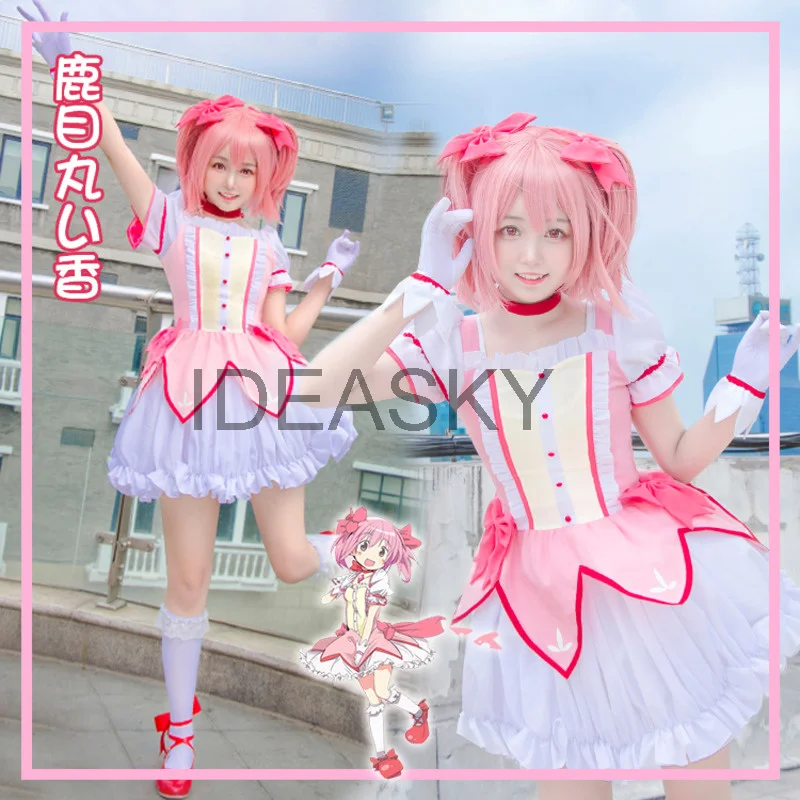 Платье для костюмированной вечеринки puella magi madoka magica; Красные туфли; Карнавальный костюм Kaname Madoka для девочек; Короткое бальное платье с бантом