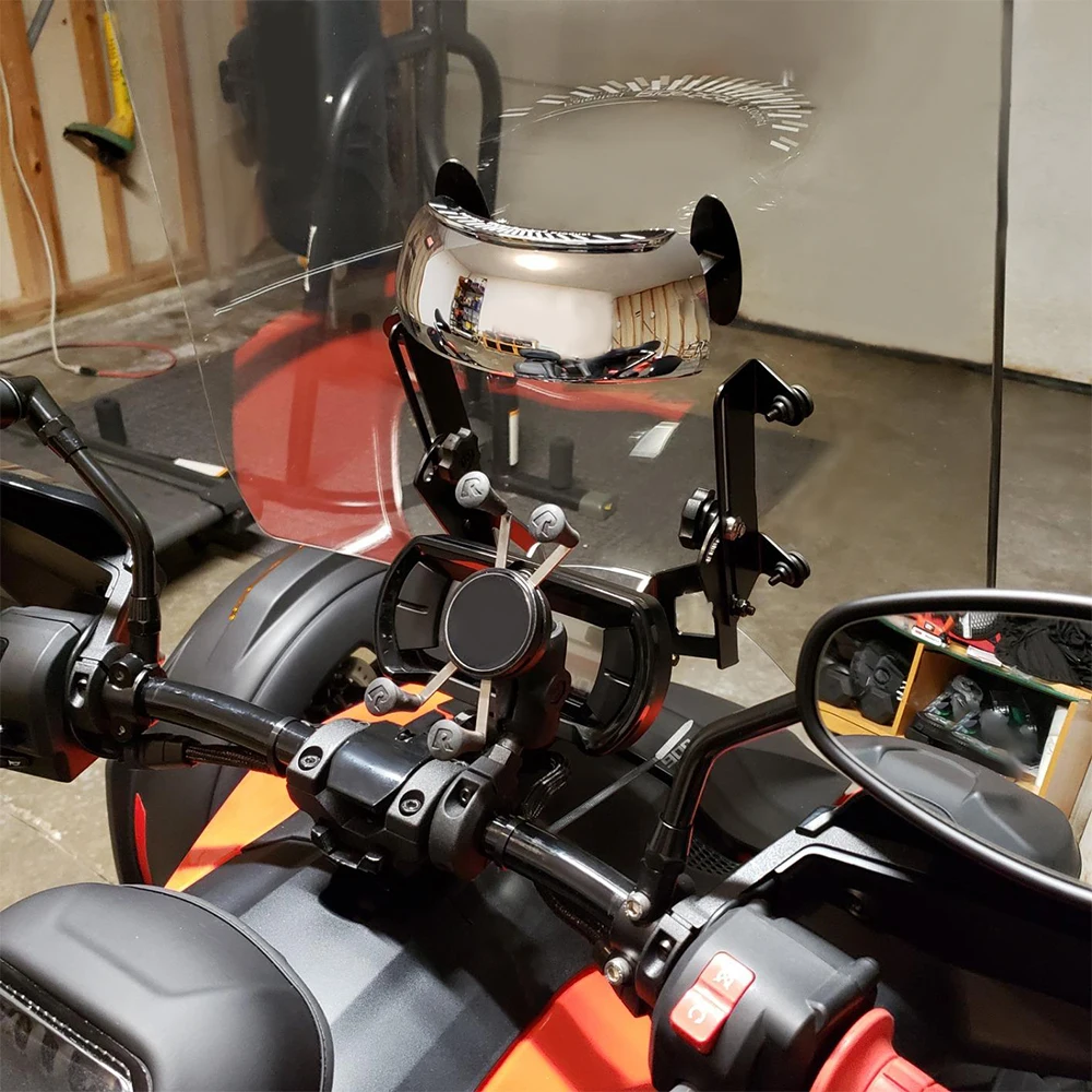 1. Это параболическое зеркало, которое крепится к центру передней части мотоцикла/скутера в пределах линии переднего обзора гонщиков.