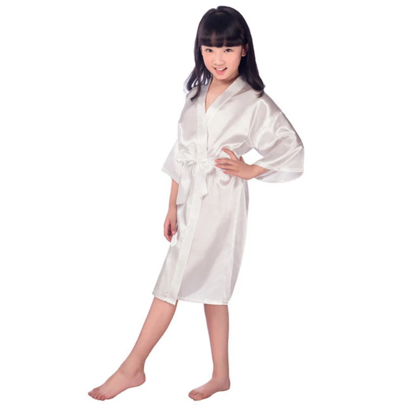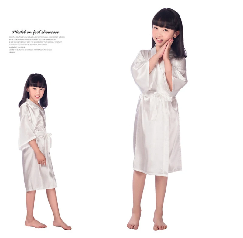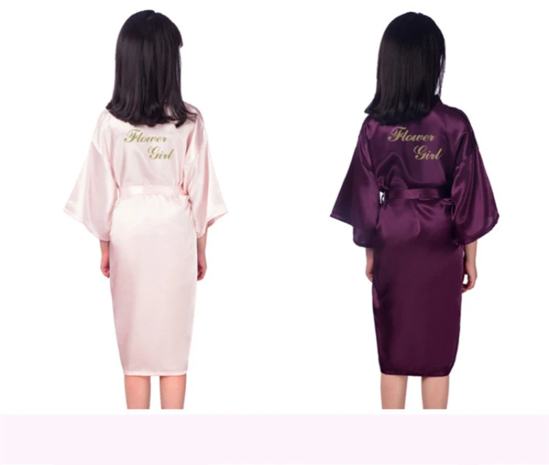 Оптовая продажа; Платье с цветочным узором для девочек; Детское атласное шелковое кимоно с золотыми блестками; Однотонная детская одежда для сна для свадьбы; Спа-вечерние платья; D34
