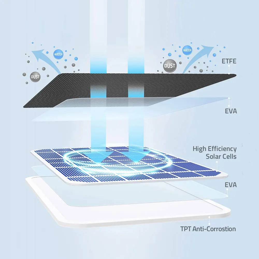 * Простота установки: кабель 9,8 футов (3 м) обеспечивает гибкость при выборе местоположения солнечной панели и обеспечивает максимальное воздействие солнечного света. Крепление на 360 градусов и настенные якори делают установку легкой и гибкой.