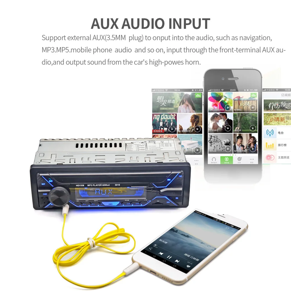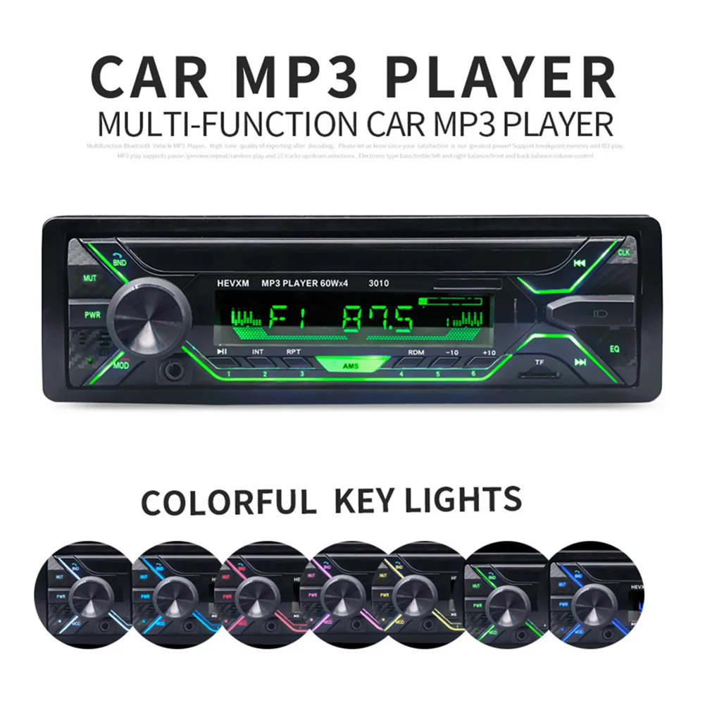 Один DIN автомобильный Радио цифровой медиа-приемник со встроенным микрофоном 1 DIN Авто Стерео Bluetooth-совместимый Hands Free вызов AUX вход TF головное устройство Характеристика: Встроенный Bluetooth-совместимый + микрофон; Поддержка громкой связи; Поддержка расширенного режима передачи звука; Поддержка индикации часов при выключении; Высококачественное цифровое стерео fm-радио; Поддержка 3 диапазонных FM1-FM2-FM3 для хранения радио, 18 радиостанций могут быть настроены. (Радиочастота: 87,5-108 МГц); Поддержка флеш-накопителя USB/tf-карт; Поддерживаемые Аудио: формат MP3/WMA/WAV и т. Д.; Поддержка функции воспроизведения папок; Поддержка дистанционного управления; Вращающийся электронный регулятор громкости; Воспроизведение MP3 поддерживает пауза/предварительный просмотр/повтор/случайное воспроизведение и предыдущий/следующий выбор 10 треков; Электронный басовый/тройной/левый-правый баланс/передний-задний баланс регулятор громкости; Передний AUX аудио входной разъем и задний L/R аудио RCA выходной порт; 4-канальная, высокая выходная мощность. Спецификация: Рабочее напряжение: 12 В постоянного тока Кнопочный светильник: 7 цветов Мобильный телефон зарядка: Поддержка USB зарядки Радиочип: независимый чип Совместимость с Bluetooth: поддержка Слот для карты памяти: поддержка tf-карты Вход AUX: Поддержка Мощность: 4*60 Вт Рабочая температура: -10 ~ + 60 ℃ Время работы в режиме ожидания: Да Радио диапазон: FM Аудио частота: FM 87,5-108 МГц Чип усилителя мощности: независимый чип Usb-порт: один USB RCA терминал: MP3/WMA/WAV/FLAC/APE Размер изделия: панель 188*58 мм, фурнитура 178*85*50 мм Примечание: Возможны незначительные отклонения в размере из-за ручного измерения, различных методов измерения и инструментов. Изображение может не отражать фактический цвет изделия из-за различного фотографирования светильник, угол и дисплей монитора. 1 х автомобильное радио 1 х Кабель-адаптер 1 пульт дистанционного управления 1 х Руководство 1 X инструмент для удаления [Relateproductdetail/]