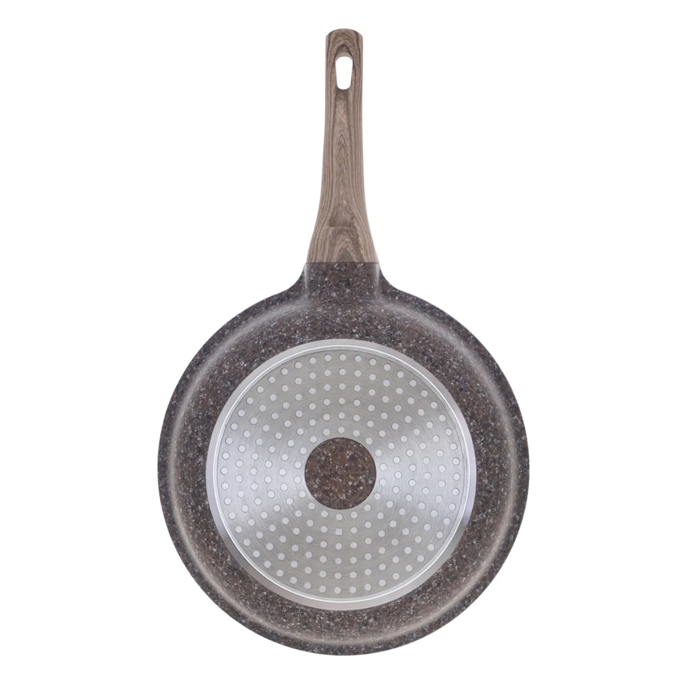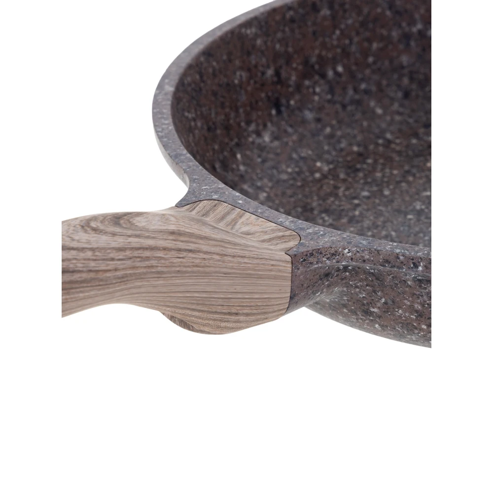 Сковорода с антипригарным покрытием NADOBA серии GRETA отличная находка для каждой хозяйки. Корпус выполнен из прочного и крепкого алюминия. Сковорода антипригарная 26 см имеет достаточно толстое дно и стенки, благодаря этому пища быстро нагревается и готовится за считанные минуты. На сковороде с легкостью можно приготовить жареную картошку, мясо или курицу, блюда получаются с аппетитной корочкой, а внутри мягкие и сочные. Пятислойное покрытие Pfluon - мраморное и антипригарное. Сковорода домашняя имеет лучшее покрытие не содержит вредные соединения PFOA, полностью экологично и безопасно, не требует использования большого количества масла во время готовки. Она будет служить вам верно многие годы и позволит готовить большое количество разнообразных блюд для всей семьи. Благодаря надежной поверхности покрытия сковороды, на ней можно использовать металлические приспособления для кухни. Такая незаменимая посуда должна присутствовать в каждом доме. Сковорода с антипригарным покрытием имеет удобную ручку"Софт-тач", которая не скользит в руках и не нагревается.