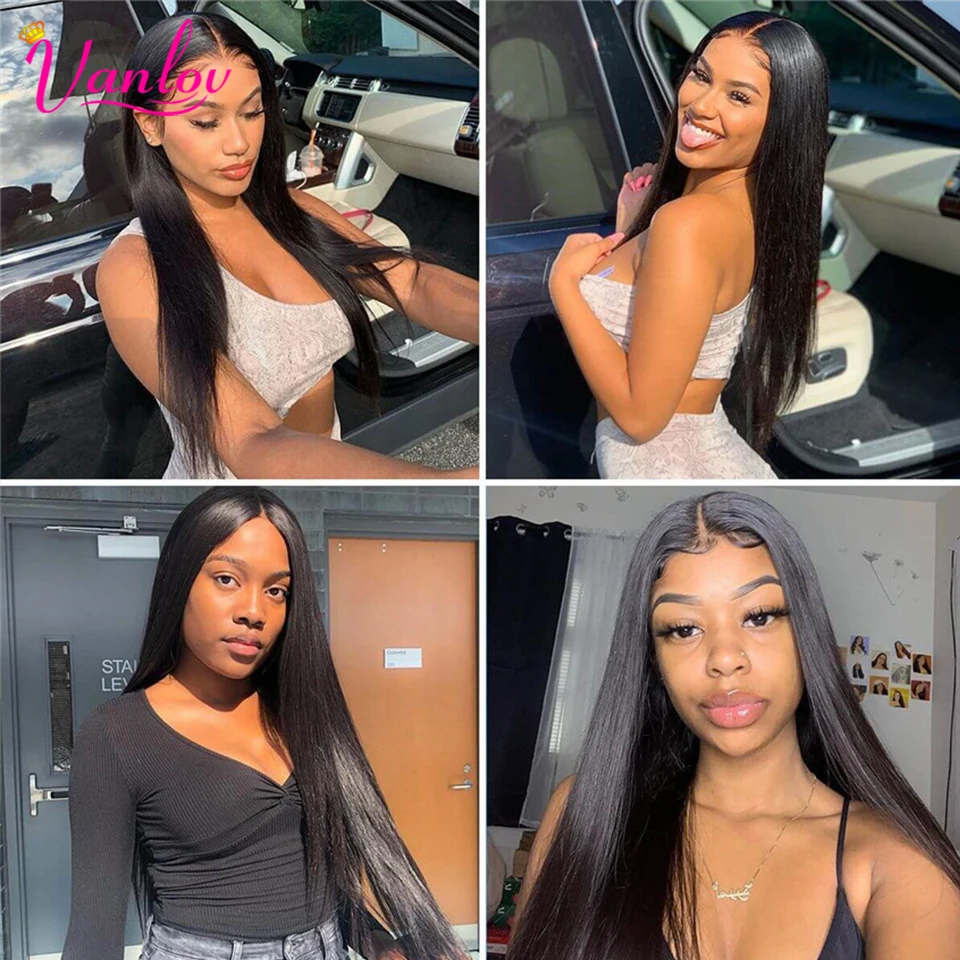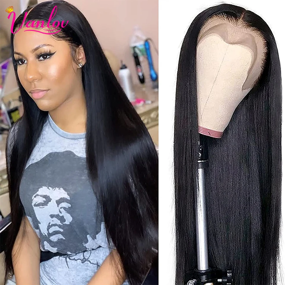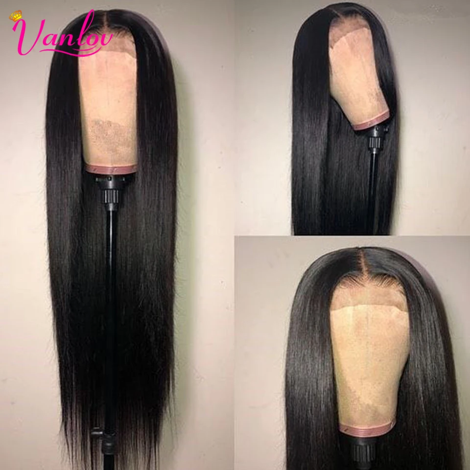 Vanlov бразильские прямые волосы, кружевные передние человеческие волосы, парики с детскими волосами, предварительно выщипанные передние кружевные парики, 180% плотность, волосы Remy