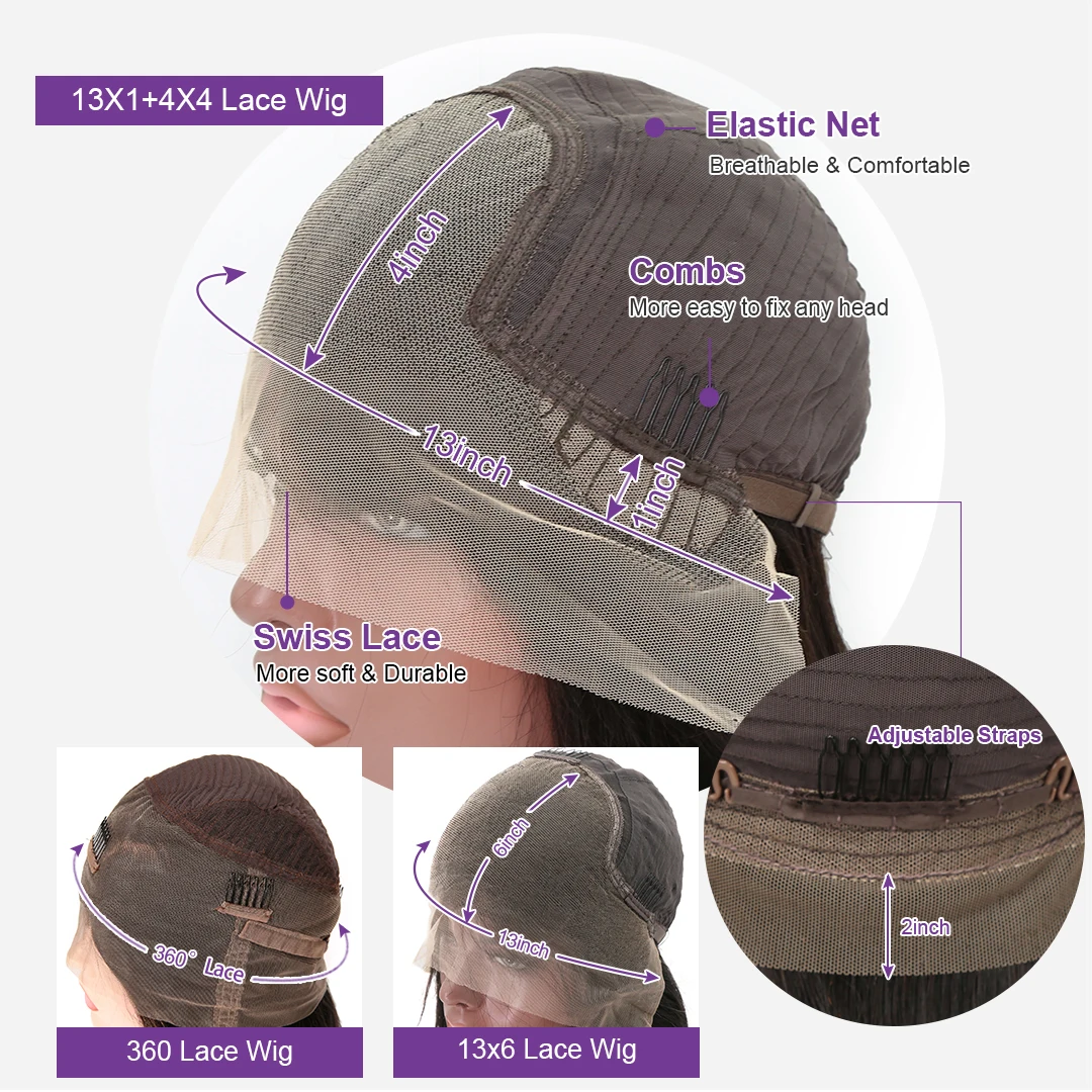 4. Swiss Lace On The Top, Invisible, Soft, And Breathable; 22.5inch (Average Size) With Adjustable Strap And 4 Combs, Easy To Adjust & Durable, Wear Comfortable