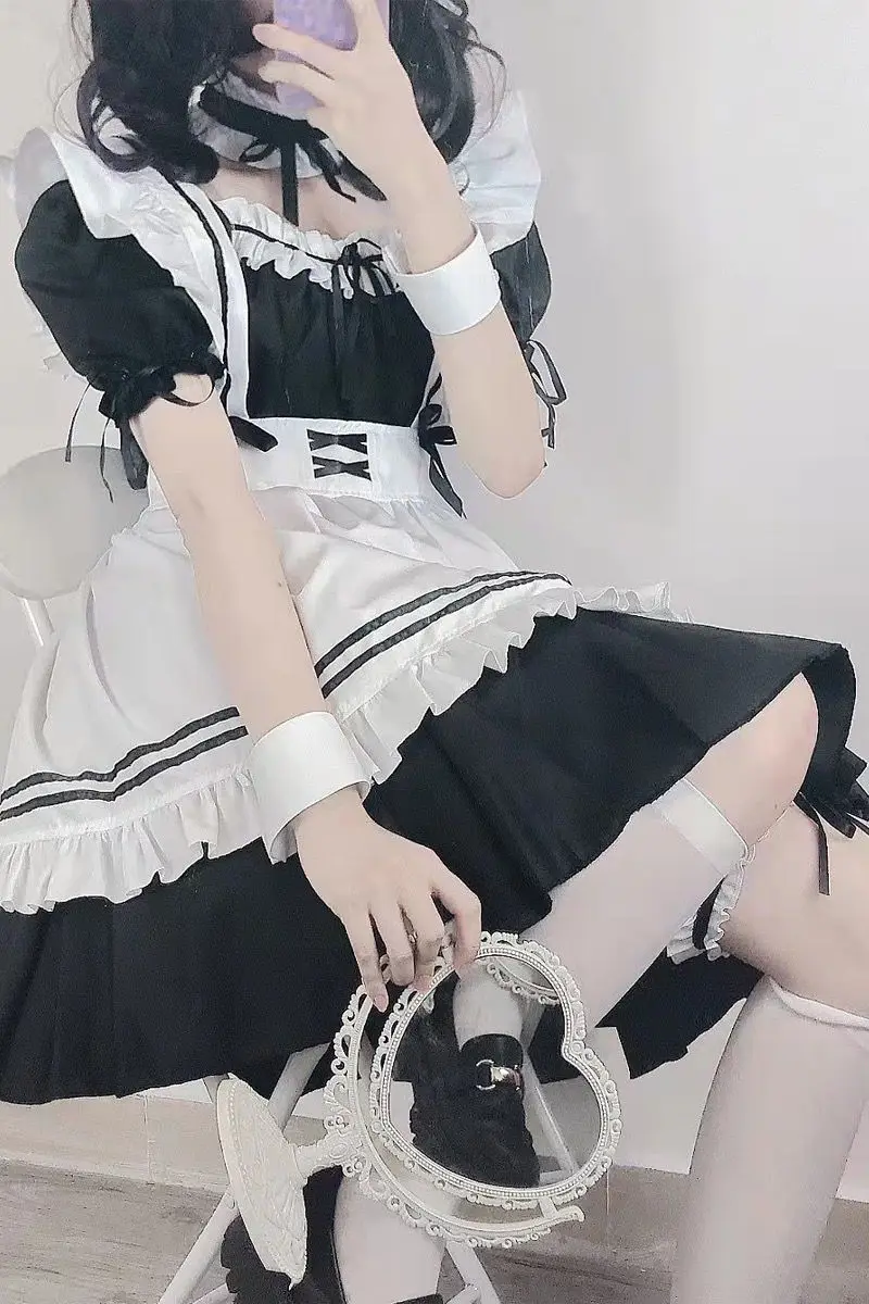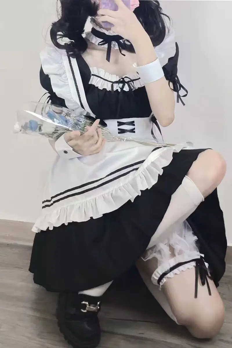 «Множество аксессуаров, классический черно-белый восхитительный наряд королевы принцессы горничной, с милым причудливым головным убором и шейным платком и бантом в виде Круга ног Лолиты, сделает вас идеальным костюмом для костюмированной вечеринки в стиле фрисской Лолиты, французской горничной, пикантного костюма.
