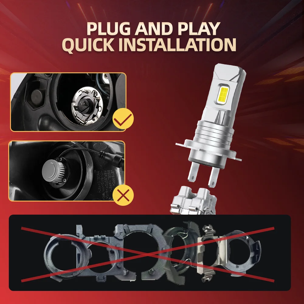 Мини-размер:Подключи и играй, прост в установке. Не нужен дополнительный адаптер для установки H7 лампы. Встроенный интеллектуальный чип IC драйвер, отсутствие радиопомех.