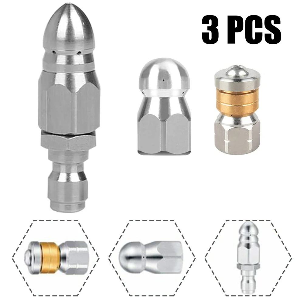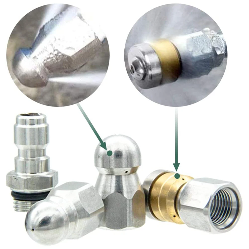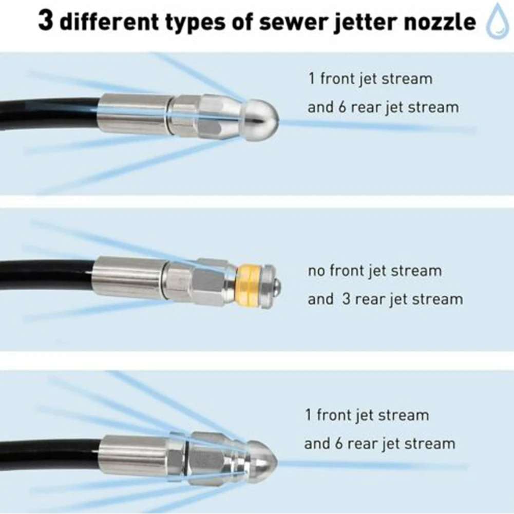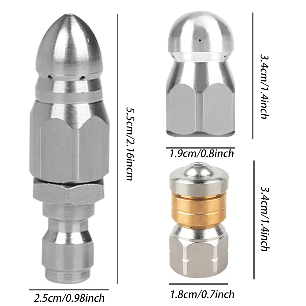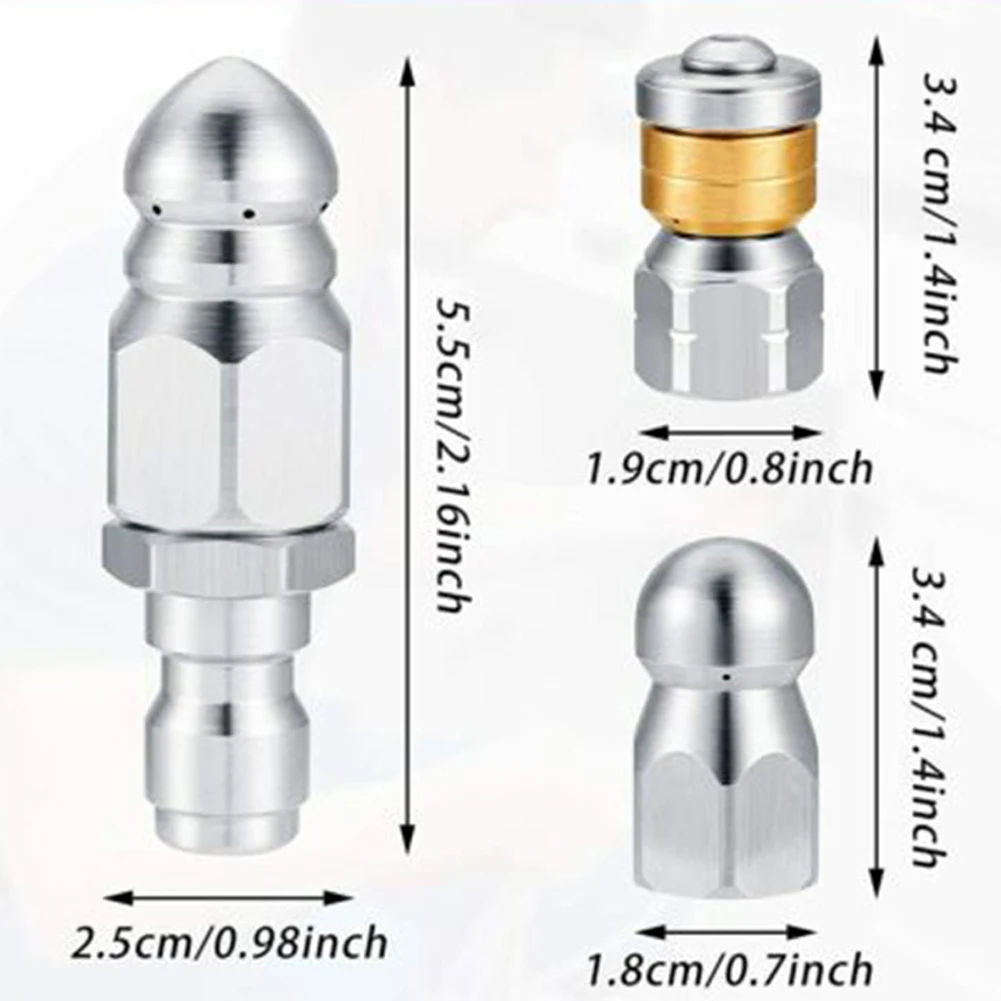 * Подходит для канализационных струйных шлангов с 1/4 дюймовым наконечником, 3 различных формообразующих насадки имеют разные размеры.
