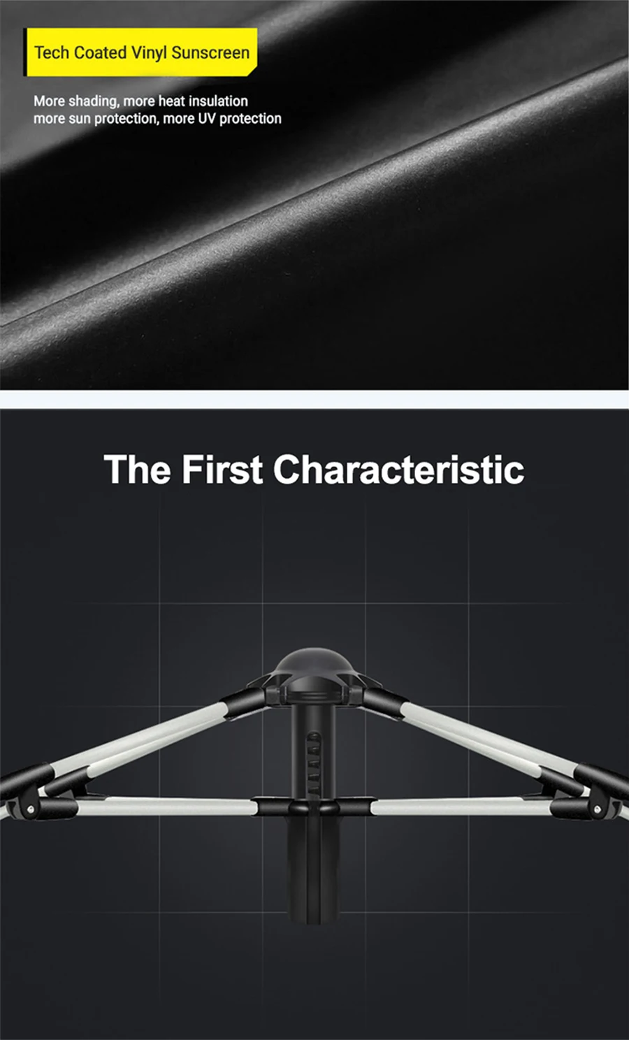 ● Наружная ткань палатки: 210D с солнцезащитным покрытием Серебряная палатка, автоматический стекловолокно