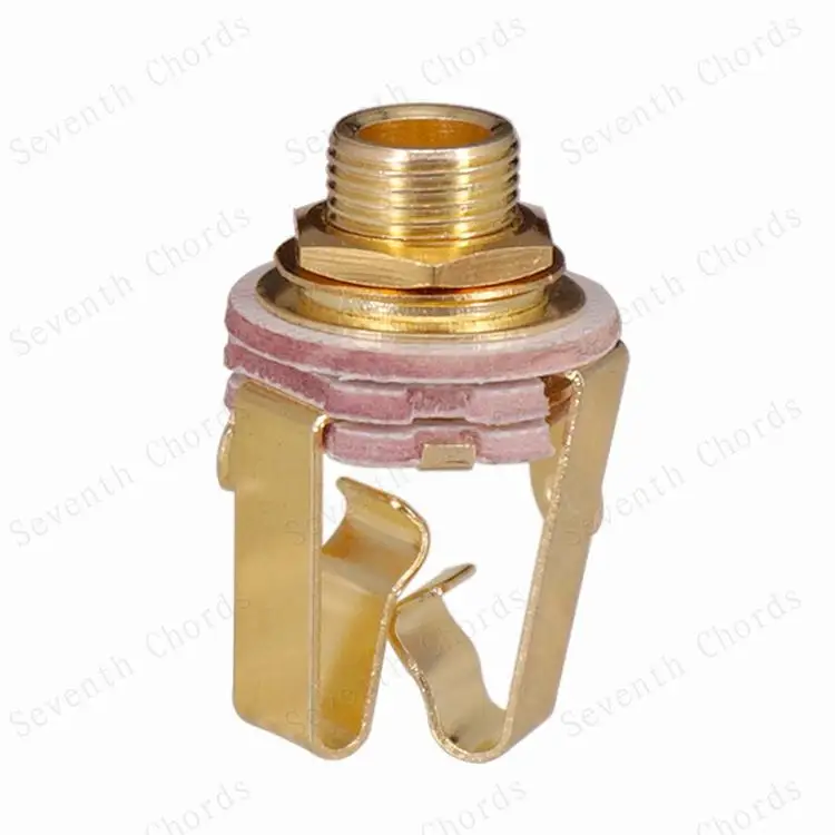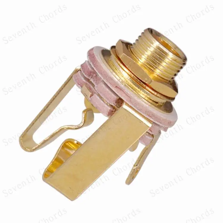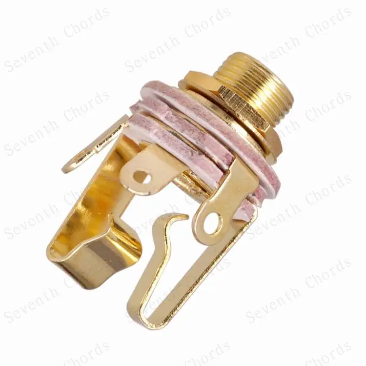 1/4 "(6,35 мм) гнездо Имеет 5 общих зубцов Цвета: серебристый и золотой Материалы латунь и пластик С гайкой и шайбой Для активного пикапа электрогитары и бас-гитары Посылка включает в себя: 10 х гнездо
