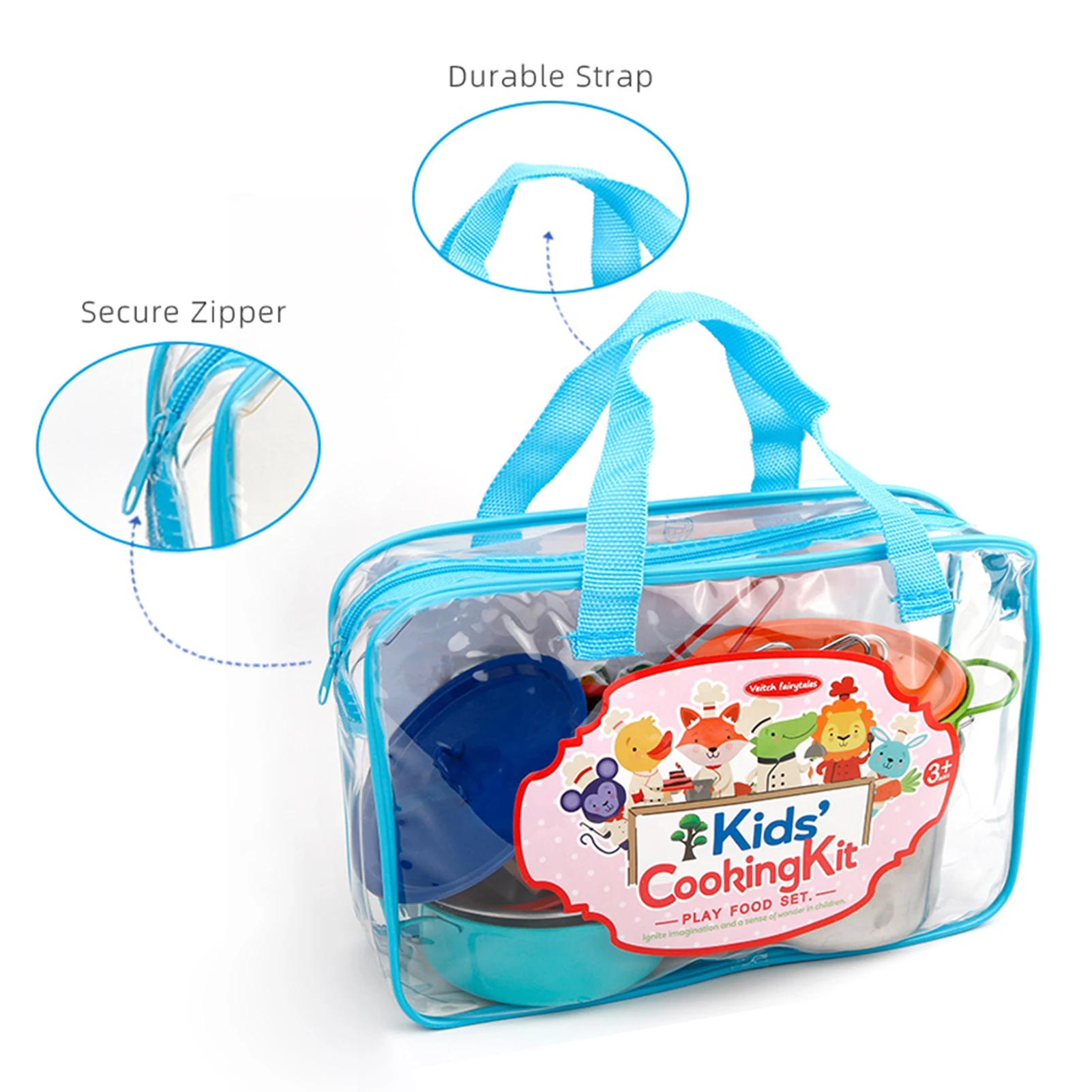 Набор кухонной утвари Toy включает кастрюлю из нержавеющей стали с крышкой и ручками, дуршлаг, кухонную утварь из нержавеющей стали, контейнеры для специй, стикеры с овощами и т. д.