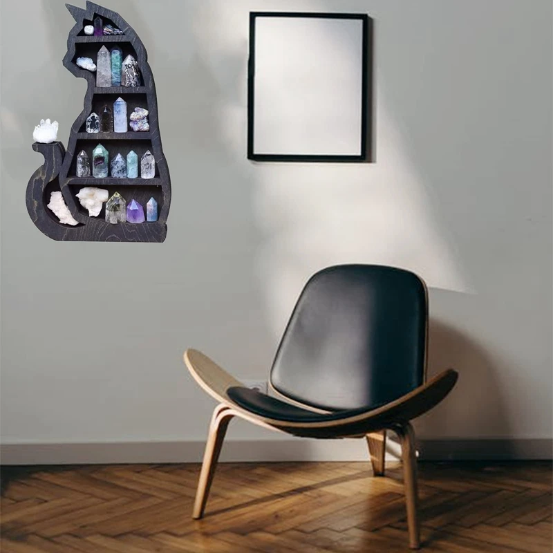 Хрустальная деревянная полка в форме кошки, настенная полка для витрины, для кристаллов, каменное эфирное масло, растение, Готический Декор ведьмы