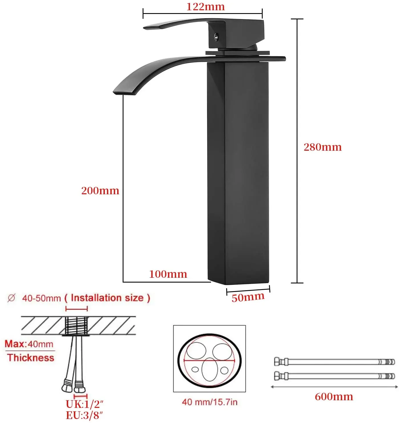 Простота установки-наши фитинги для раковины подходят для большинства раковин, 2x600 мм гибкий соединительный шланг, адаптер 3/8 "до 1/2", монтажные hardwares, подробная инструкция для легкой сборки. Подходит для диаметра отверстия 32-45 мм.