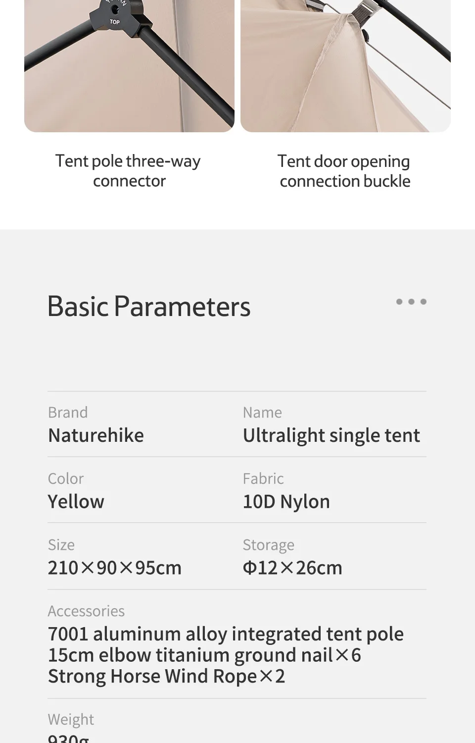 Комплектация: Палатка/встроенный стержень из алюминиевого сплава 7001 (около φ мм)/заземляющий гвоздь * 10/ветровая веревка * 2/специальная напольная ткань/лента для обвязки/сумка для хранения