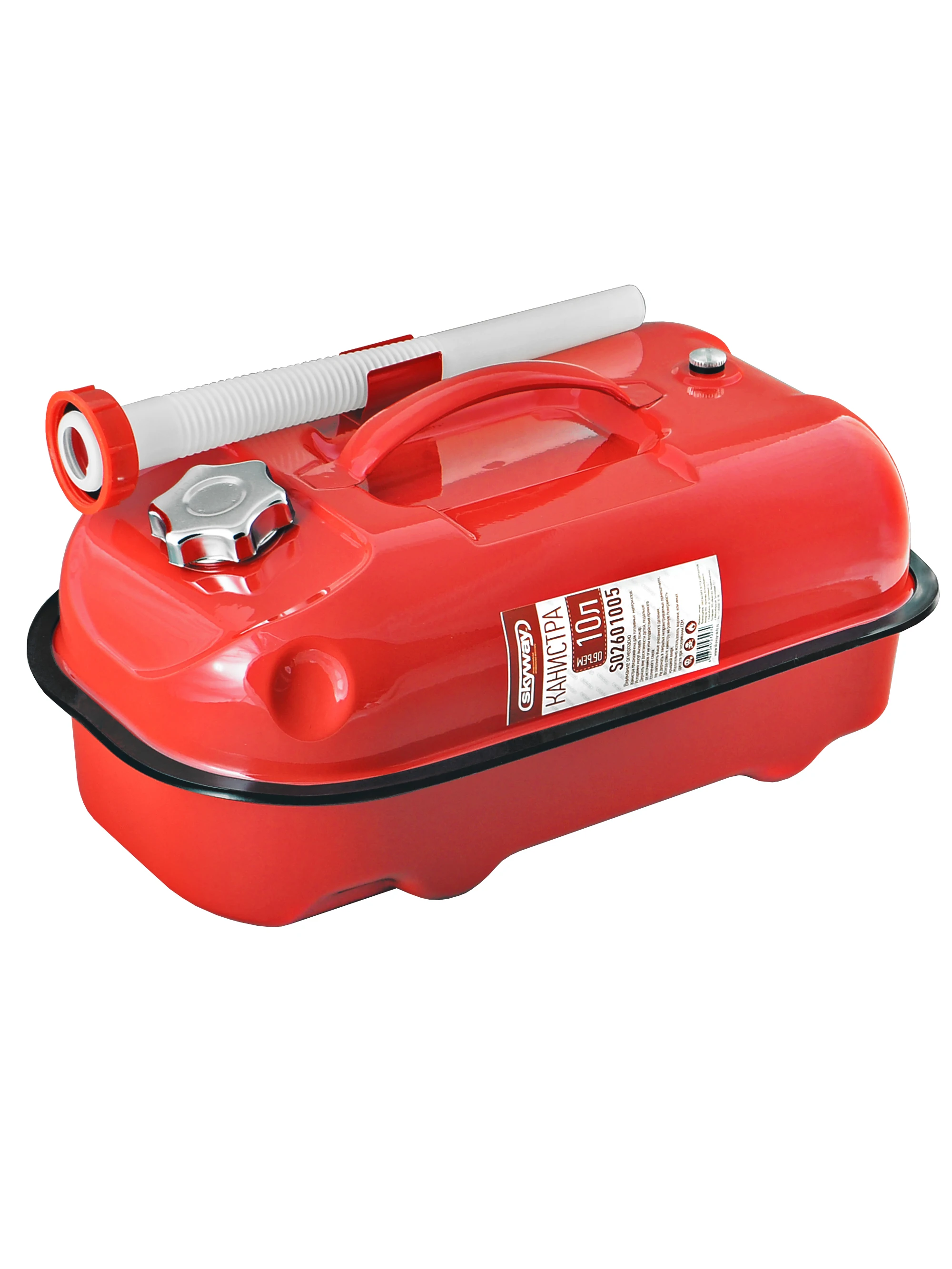 Канистра металлическая SKYWAY 10л горизонтальная Антикоррозийное фосфатированное покрытие - предназначена для хранения жидкостей, в том числе топлива и топливных смесей. Изготовлена из стали холодного проката, что обеспечивает повышенную прочность. Внешняя поверхность оцинкована и окрашена. Внутреннее фосфатированное антикоррозийное покрытие препятствует образованию ржавчины. Ребра жесткости на поверхностях канистры придают ей прочность при механических воздействиях. Кант по центру канистры предотвращает повреждения канистры и снижает шум при транспортировке.