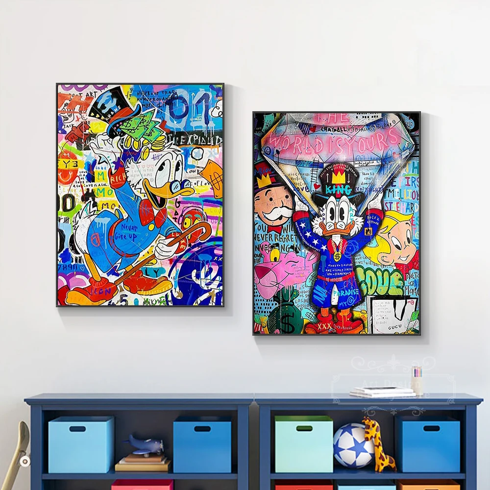 Граффити искусство богатые Скрудж макдак холст картины Дисней стены искусства картины плакаты печать дома гостиной Декор куадро без рамки