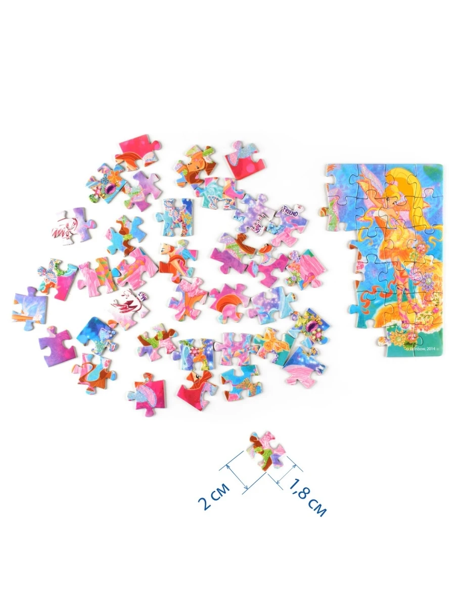 Однажды простая девочка по имени Блум открыла в себе волшебные способности и стала феей. Она поступила в специальную школу магии, где встретила своих подруг: Стеллу, Флору, Музу, Текну и Лейлу. Шесть фей объединились в Winx Club. Им предстоит противостоять своим ровесницам ведьмам, которые также, как и Winx принадлежат к определенным клубам и учатся в волшебных школах. Размер собранной картинки - 18 х 13 см.Размер одной детали - 2 х 1,8 см.Пазл подойдет для детей от 3 лет.