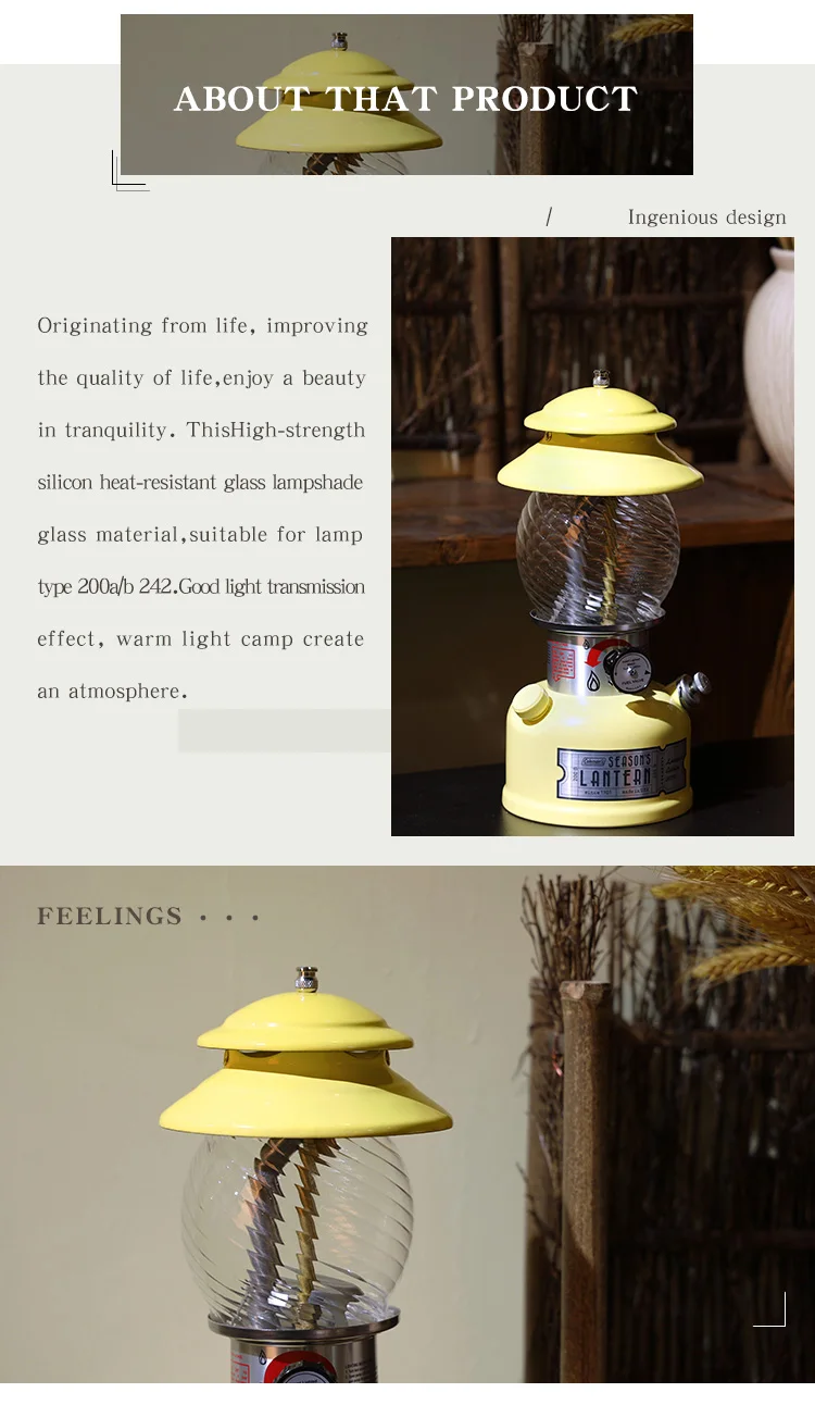 Характеристики:Бренд: Thous WindsПодходящая лампа Модель: 200a/b 242 масляная лампаМатериал: высокоборосиликатное жаростойкое стеклоСоветы: товар только стеклянный чехол для фонаря, без освещения, спасибо!