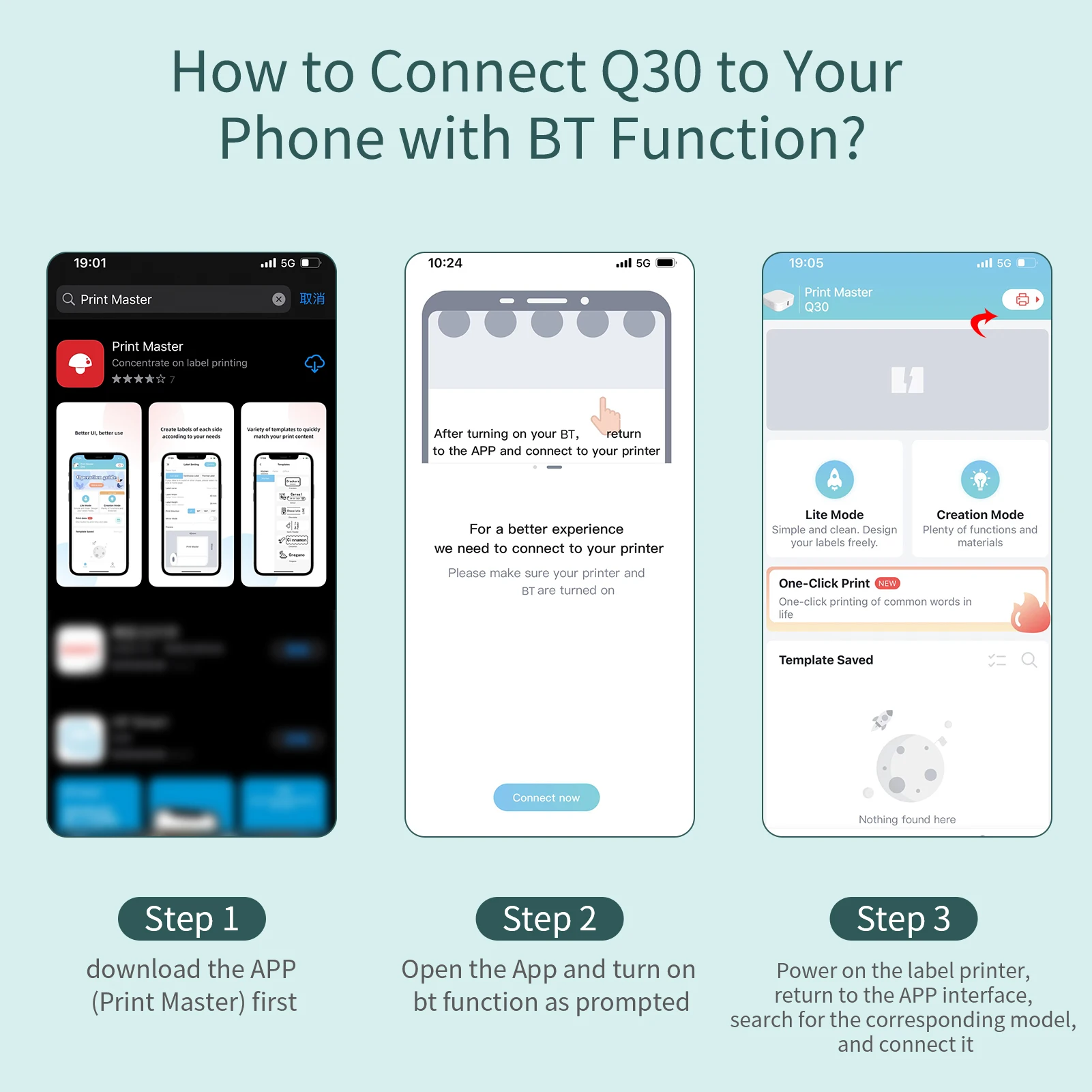 Удобно печатать-подключение через BT к вашему телефону, совместимо с системами Android и iOS. Найдите «Print Master» в Google App Store или App Store для загрузки. Затем не стесняйтесь проектировать и печатать наклейку в любое время.