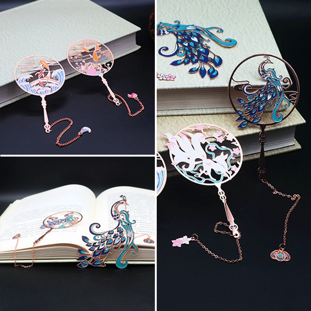 4Pcs Hot Chinese Style Brass Peacock Bookmark Retro Book Clip Pagination Mark Metal Tassel Stationery School Office Supplies