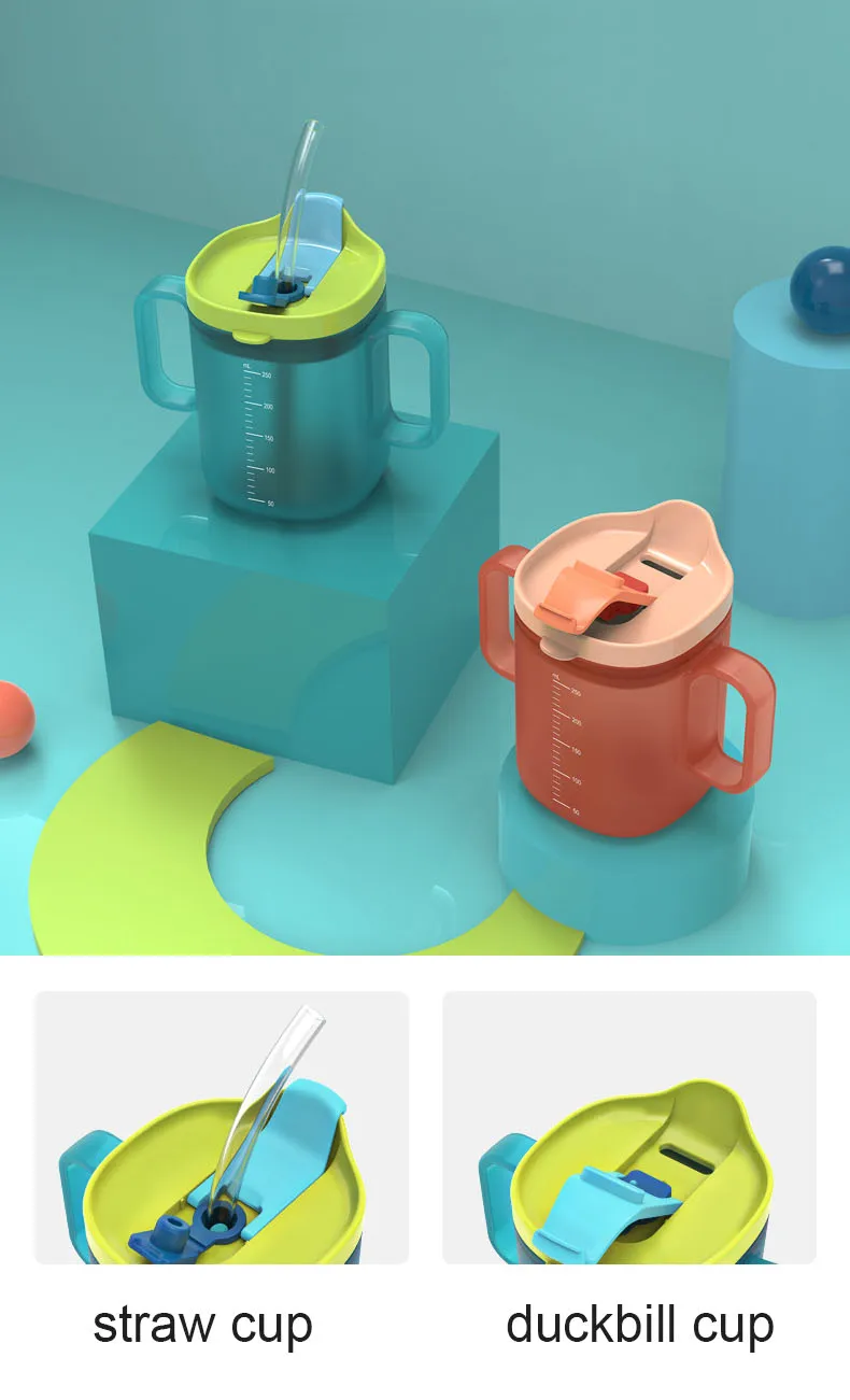 Features: A cup for three purposes, double handle design, baby can drink water by himself!