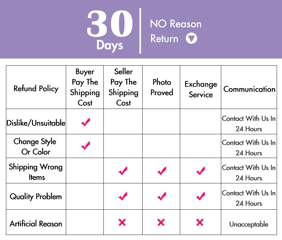 15 Days No Reason To Return (check more policy details below Or Contact Us directly )
