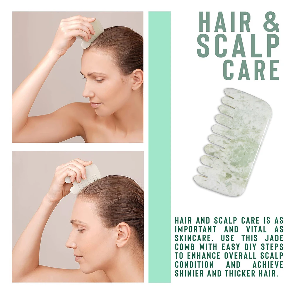 Изготовлен из 100%-го нефрита, этот удобный многозадачный инструмент мы называем Jade GuaSha гребень для лица эргономично разработан, чтобы соответствовать изгибам лица и линии, в то время как широкий набор зубов гребня может эффективно массировать кожу головы. Гребень также может быть использован на лице, что дает дополнительную стимуляцию для улучшения циркуляции!