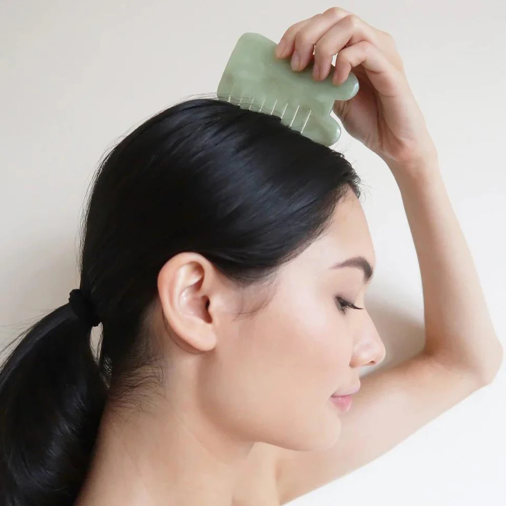 Массаж кожи головы Нефритовая расческа помогает меридианцам, связанным с релаксацией, уменьшением усталости и омоложением волос.