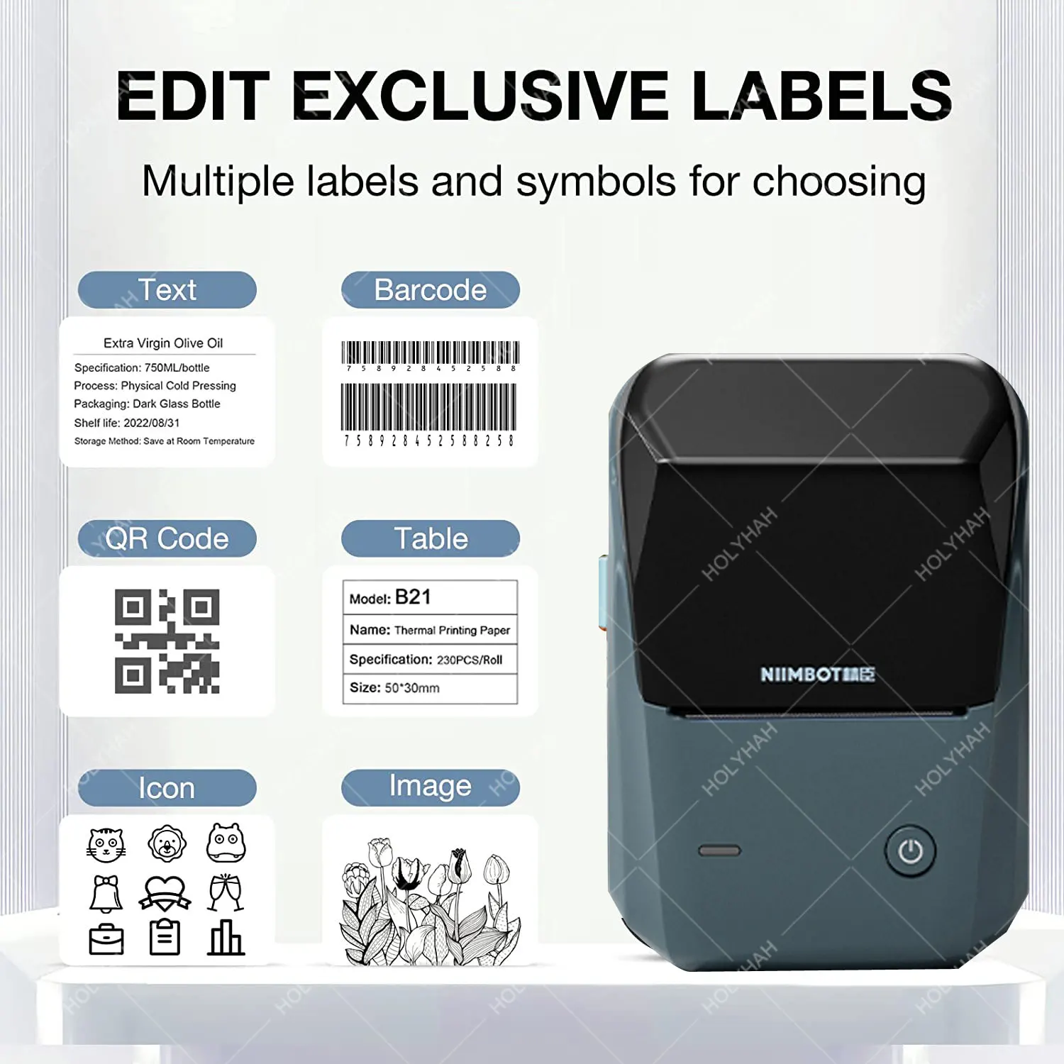 Niimbot B1-это многофункциональный принтер этикеток, который может печатать этикетки кабелей, этикетки ювелирных изделий, ценовые этикетки и т. Д. Он может автоматически распознавать этикетку с помощью приложения для легкой работы.