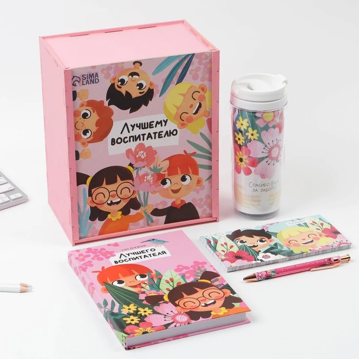 | Составляющие подарочного набора | Ручка,Ежедневник,Мыло,Термостакан,Планинг |