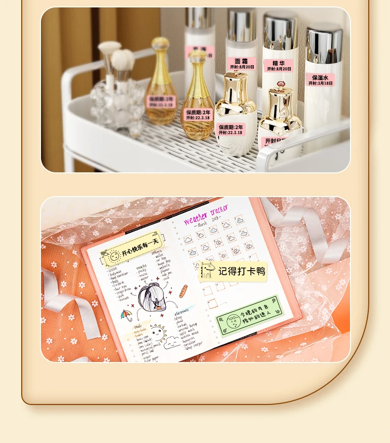 Умнее и меньше-по сравнению с традиционными производителями этикеток, этот портативный производитель этикеток меньше и умнее. Компактный и красивый дизайн, и вы можете взять его в карман и напечатать этикетки и наклейки в любое время и в любом месте.