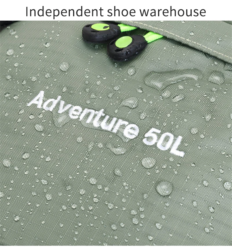 -Рюкзак 50L имеет дождевик на дне, предотвращает попадание воды и пыли в рюкзак, полезный инструмент в дождливый день.
